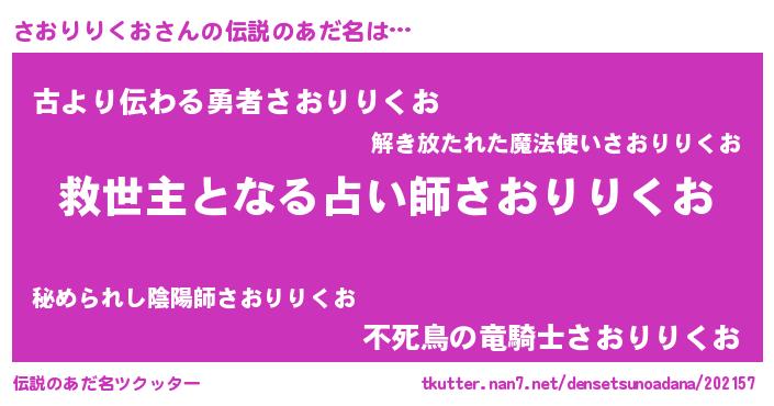 | ヒーロー風カッコイイあだ名 | 『天空の使者さおりりくお』 |