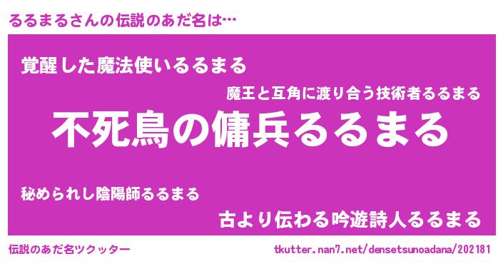 | ヒーロー風カッコイイあだ名 | 『仮面ルルダー』『最強戦士ルルマル』 |