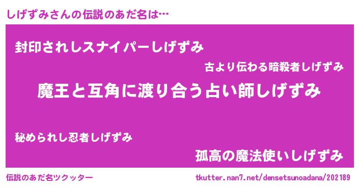 | 女子向けラノベタイトル風あだ名 | 『しげずみ恋絵巻』『闇のしげずみ』 |