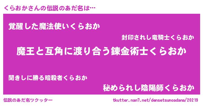 | ヒーロー風カッコイイあだ名 | 『愛の使者くらおか』『天弓騎士クラ』 |