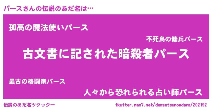 | ヒーロー風カッコイイあだ名 | 『ネオパース』『天弓騎士パー』 |
