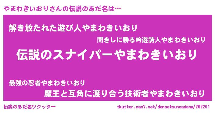 | 欧米人風あだ名 | 『やまわきいおり・ステッグマイヤー』 |