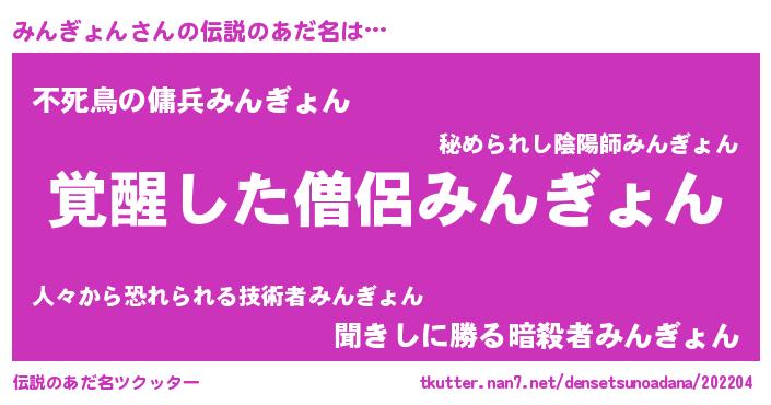 | 意味不明あだ名 | 『とにかく怪しいみんぎょん』 |