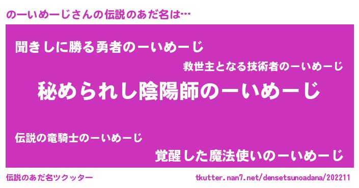 | 男性向けラノベタイトル風あだ名 | 『ノーイメージスレイヤー』 |