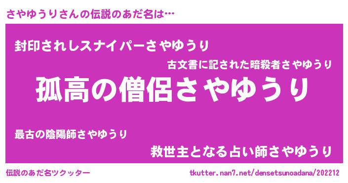 | ポケモン風あだ名 | 『サヤキング』『サヤセウス』 |