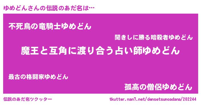 | 意味不明あだ名 | 『自称ゆめどん』『ペロリンゆめどん』 |