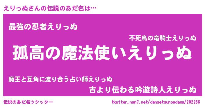 | ヒーロー風カッコイイあだ名 | 『黄金騎士エリ』『ウルトラえりっぬマン』 |