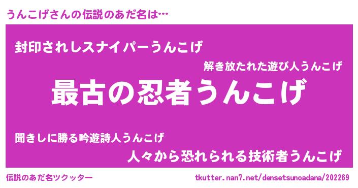 | ヒーロー風カッコイイあだ名 | 『ウルトラうんこげマン』『魔戒騎士ウン』 |