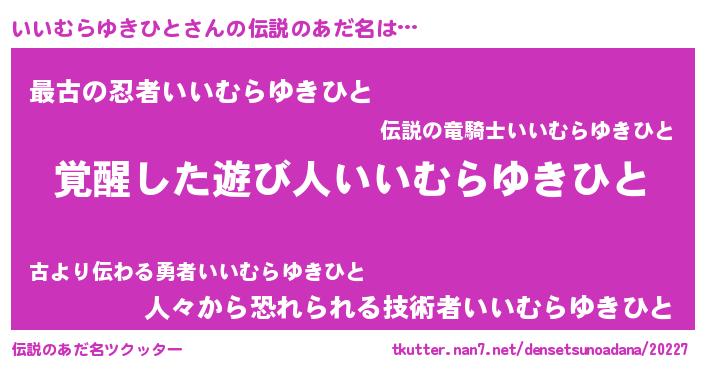 | ポケモン風あだ名 | 『ヒイイムラユキヒト』『イイムダネ』 |
