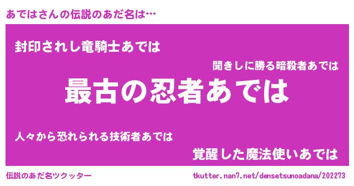 | ヒーロー風カッコイイあだ名 | 『ウルトラあではマン』『仮面アデダー』 |