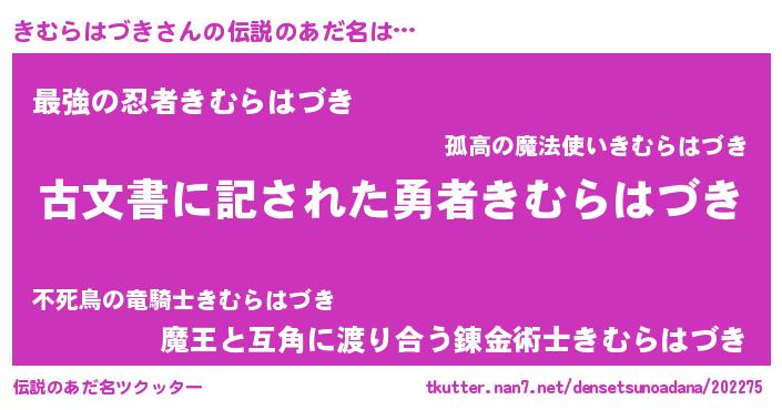 | ヒーロー風カッコイイあだ名 | 『ネオキムラハヅキ』『仮面キムダー』 |