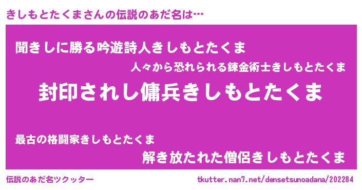 | ヘコむあだ名 | 『きしにゅー』『きしもとたくま(笑)』 |