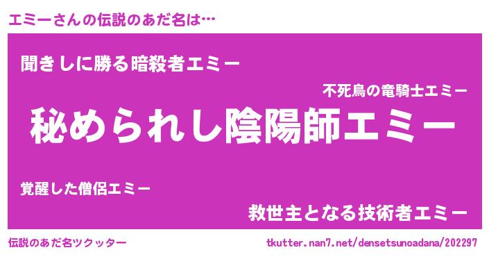| ファンタジー風あだ名 | 『エターナルエミーー』『ゼエミトゥ』 |