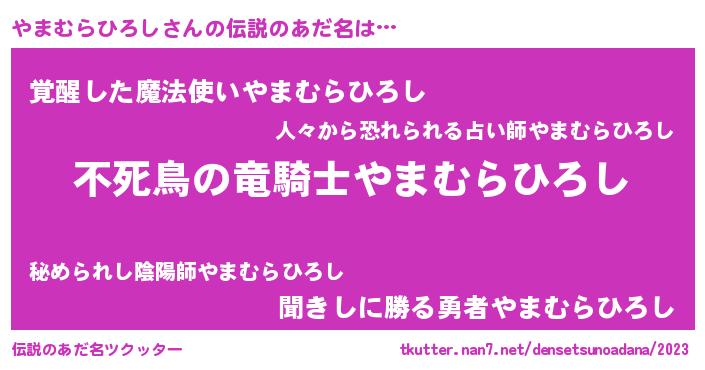 | 意味不明あだ名 | 『自称やまむらひろし』 |
