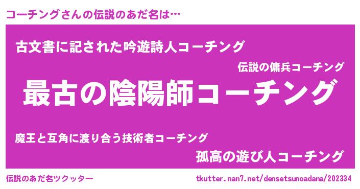 | 意味不明あだ名 | 『住所不定無職コーチング(77歳)』 |