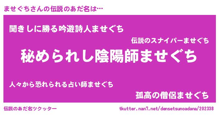 | ファンタジー風あだ名 | 『ゼマセトゥ』『エターナルマセグチー』 |