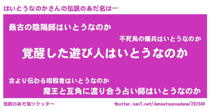 | 男性向けラノベタイトル風あだ名 | 『はいとうなのかの嫁は女の子じゃないと思った?』 |