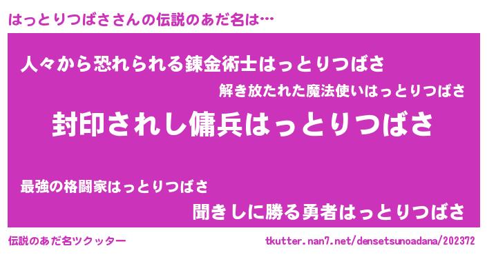 | 女子向けラノベタイトル風あだ名 | 『悪役はっとりつばさに転生したようですが、知った事ではありません』 |