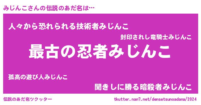 | 意味不明あだ名 | 『みじんこフォーエバー』『自称みじんこ』 |