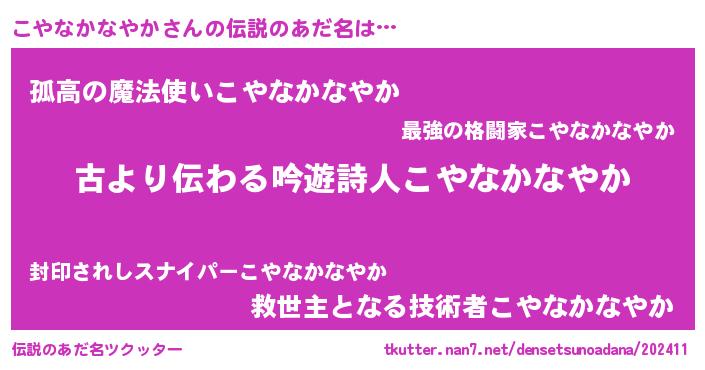 | 料理風あだ名 | 『こやなかなやかごはん』 |
