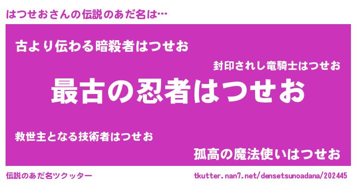 | 意味不明あだ名 | 『住所不定無職はつせお(62歳)』 |