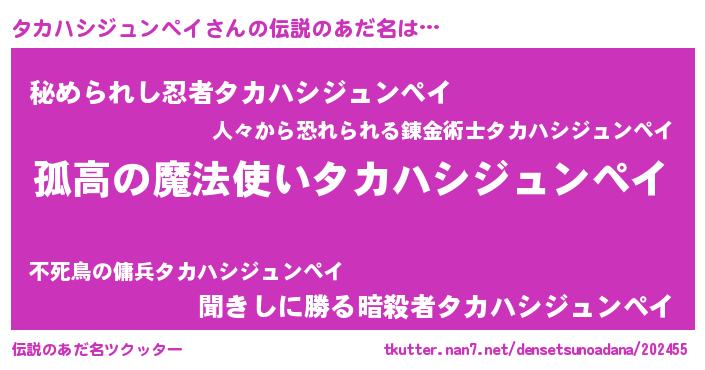 | 意味不明あだ名 | 『自称タカハシジュンペイ』 |