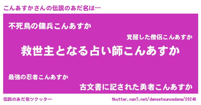 | 女子向けラノベタイトル風あだ名 | 『闇のこんあすか』 |