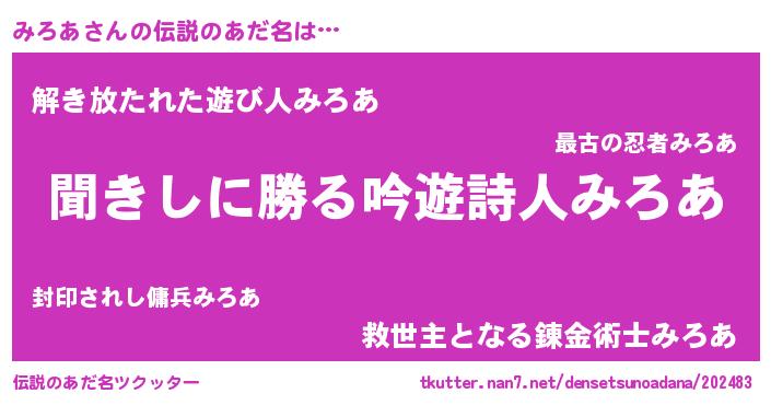 | 意味不明あだ名 | 『住所不定無職みろあ(12歳)』『自称みろあ』 |