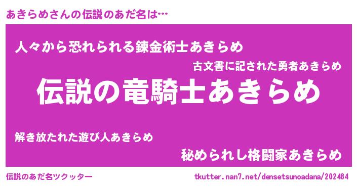 | ヒーロー風カッコイイあだ名 | 『スーパーアキラメ』『最強戦士アキラメ』 |