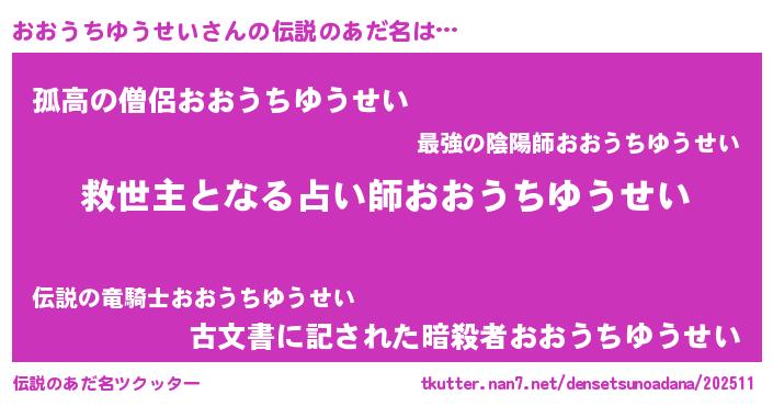 | 意味不明あだ名 | 『自称おおうちゆうせい』 |
