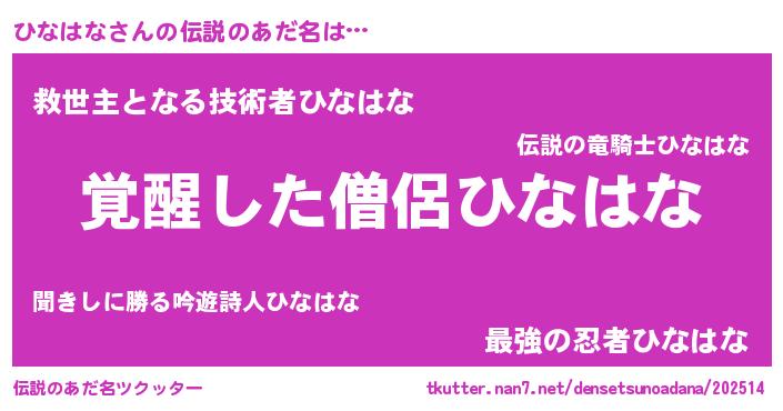 | 意味不明あだ名 | 『とにかく怪しいひなはな』 |