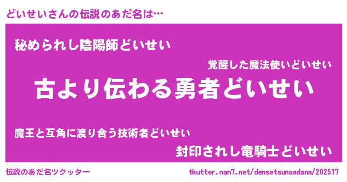 | ヒーロー風カッコイイあだ名 | 『ネオドイセイ』『ウルトラどいせいマン』 |
