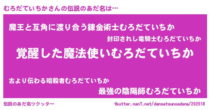 | 意味不明あだ名 | 『とにかく怪しいむろだていちか』 |
