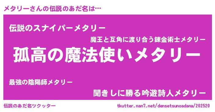 | 胡散臭い通販商品みたいなあだ名 | 『信頼と実績のサプリメント…その名も「メタリー」』 |