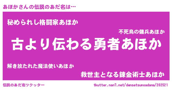 | 意味不明あだ名 | 『住所不定無職あほか(98歳)』 |