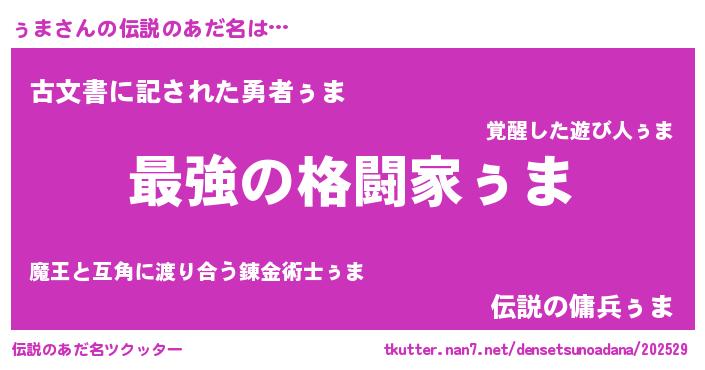 | 肩書あだ名 | 『ぅま船長』『ぅま大将』『ぅま教頭』 |