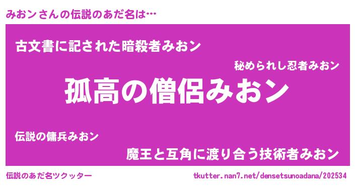 | ヘコむあだ名 | 『みお太郎』『みおン(遠い目)』 |