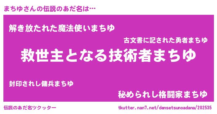 | ヒーロー風カッコイイあだ名 | 『仮面マチダー』『愛の使者まちゆ』 |