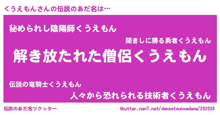 | ヒーロー風カッコイイあだ名 | 『魔戒騎士クウ』『仮面クウダー』 |