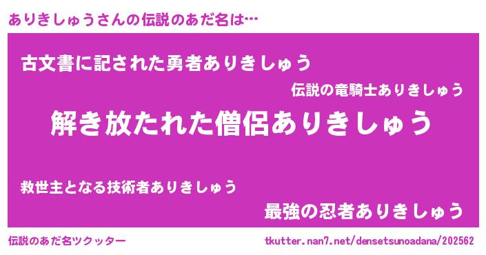 | 意味不明あだ名 | 『とにかく怪しいありきしゅう』 |