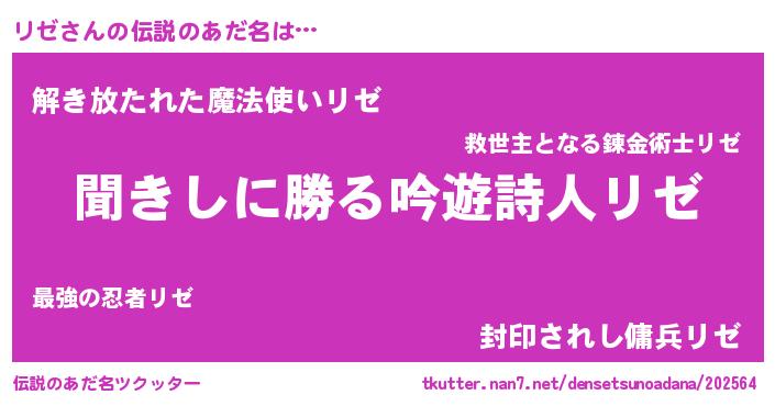 | 男性向けラノベタイトル風あだ名 | 『リゼという概念が存在しない退屈な世界 』 |