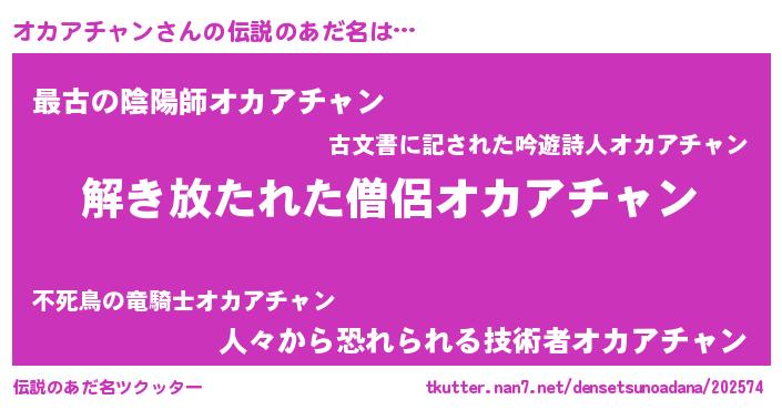 | ポケモン風あだ名 | 『オカゴンZ』『ヒオカアチャン』 |