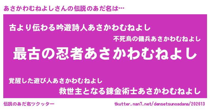 | ポケモン風あだ名 | 『アサゴンZ』『アサカダネ』 |