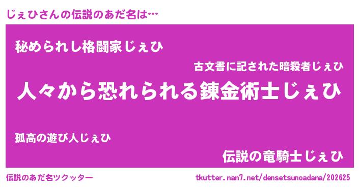 | ヒーロー風カッコイイあだ名 | 『正義の使者じぇひ』『超時空戦士ジェヒ』 |