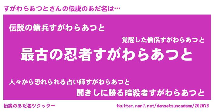 | ファンタジー風あだ名 | 『エターナルスガワラアツトー』 |
