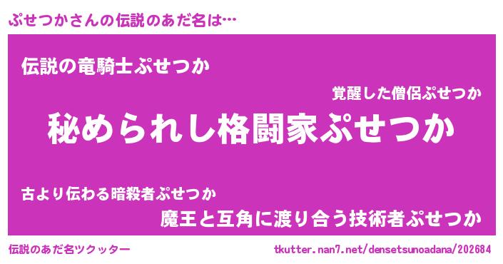 | ヒーロー風カッコイイあだ名 | 『ウルトラぷせつかマン』『仮面プセダー』 |