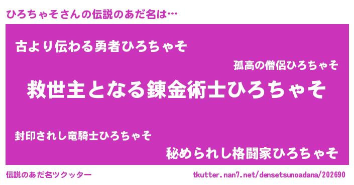 | 胡散臭い通販商品みたいなあだ名 | 『あなたにだけ特別に提供する世界で10本だけ現存している希少なブランデー…その名も「ひろちゃそ」』 |