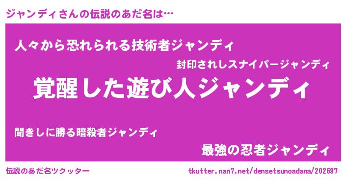 | 男性向けラノベタイトル風あだ名 | 『Re:ジャンディから始める異世界生活』 |