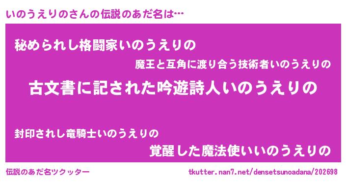 | ヒーロー風カッコイイあだ名 | 『ネオイノウエリノ』『幻影騎士イノ』 |