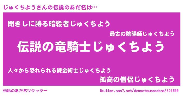 | ヒーロー風カッコイイあだ名 | 『スーパージュクチヨウ』『暗黒騎士ジュ』 |